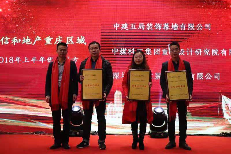 近日,中建信和地產(chǎn)重慶區(qū)域公司2018年度供方答謝會于中建·瑾和城營銷中心成功舉行,會議上給與了中建項目及項目管理人員高度評價,并授予伊派設(shè)計總監(jiān)段文娟女士“2018年度優(yōu)秀項目經(jīng)理”榮譽稱號。