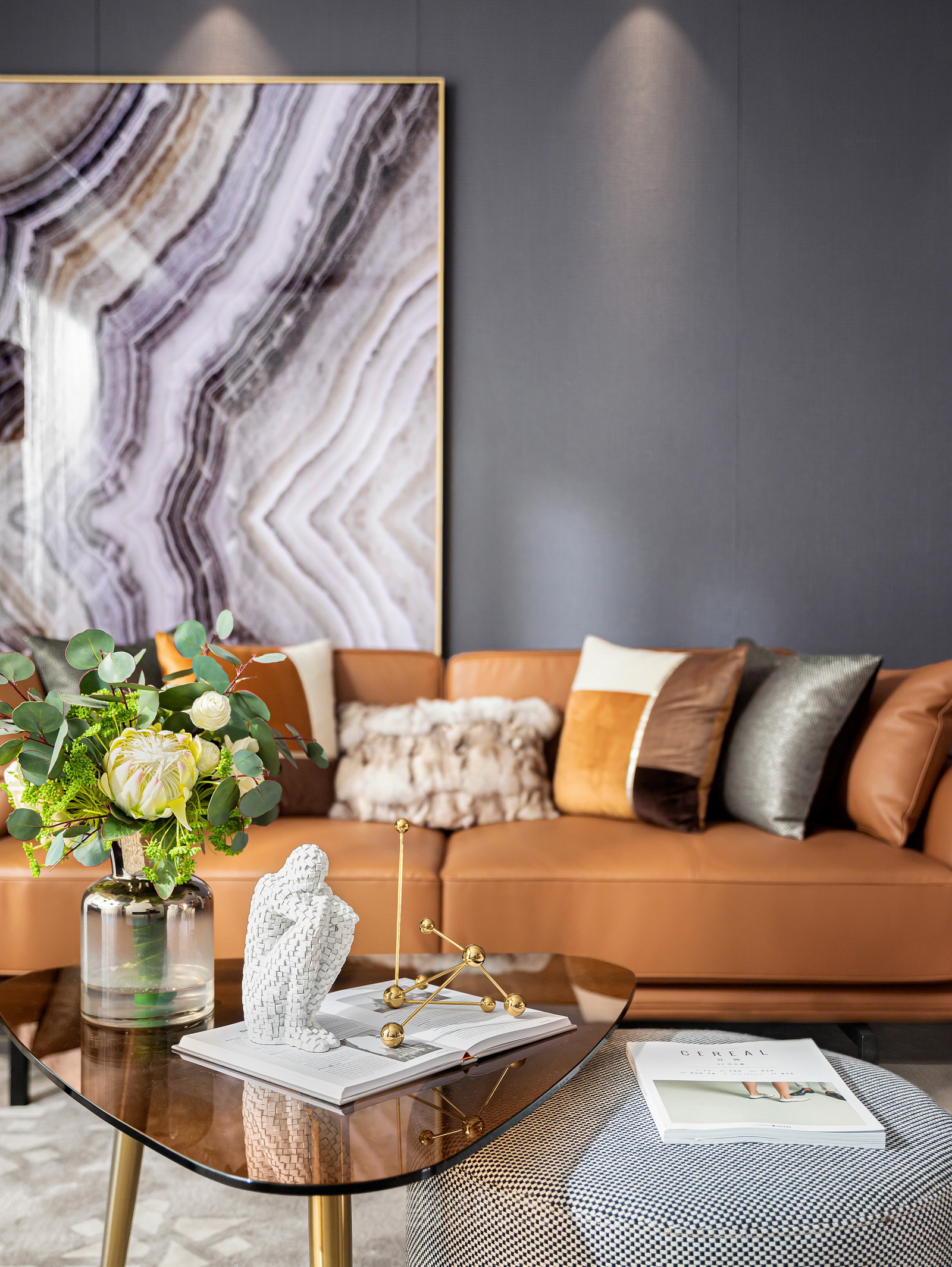 本案風(fēng)格為現(xiàn)代港式風(fēng)格,采用時(shí)尚精簡(jiǎn)、低調(diào)內(nèi)斂的高級(jí)灰是用于家居裝扮的首選基調(diào)色彩,呈現(xiàn)優(yōu)雅魅力和精致大氣的視覺感官,符合人們對(duì)現(xiàn)代生活的審美需求。同理,作為潮流都市代表色之一的暖橙,伊派設(shè)計(jì)在居家設(shè)計(jì)中的運(yùn)用中,讓空間張揚(yáng)不浮夸、經(jīng)典且時(shí)尚,成為永恒不變的奢侈品味。