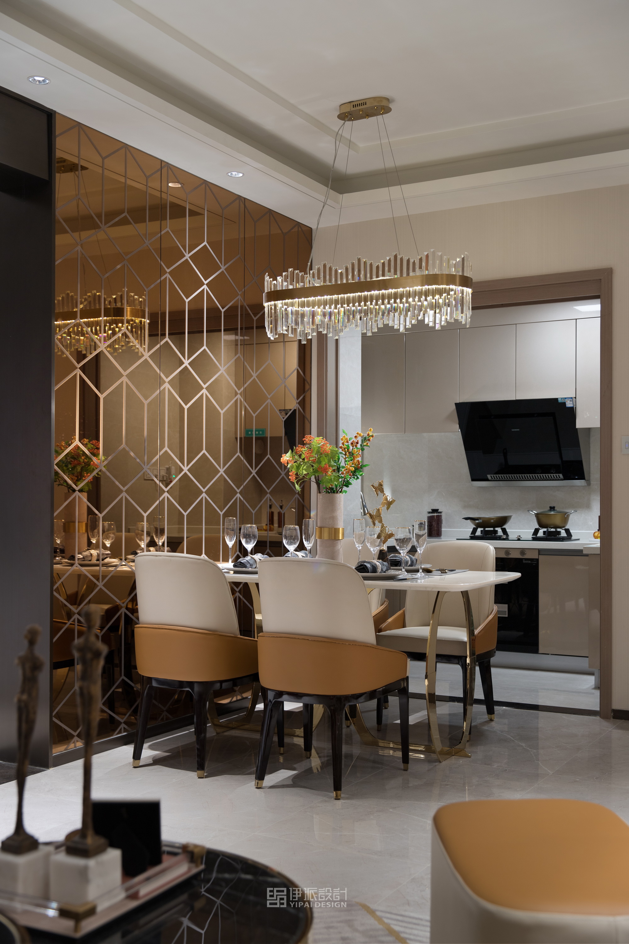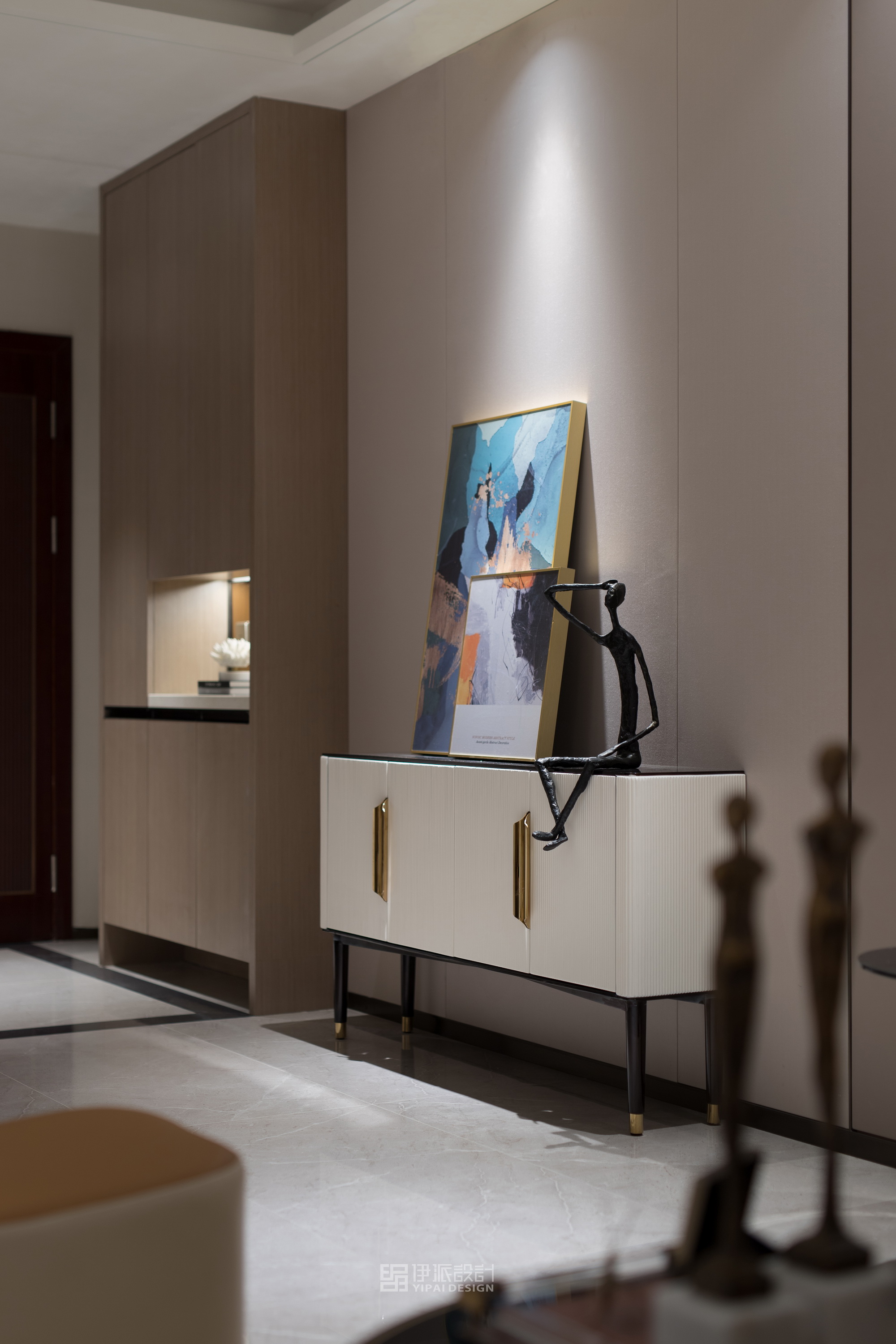 本案軟裝設計工程針對現(xiàn)代空間的美學思考,將上世紀的雕像與現(xiàn)代藝術,融合出獨具一格充滿西方氣息的藝術空間,神秘感縈繞其中,將“愛馬仕橙”作為設計核心,以港式輕奢的格調來定義空間的精神氣質,演繹品質高貴生活。