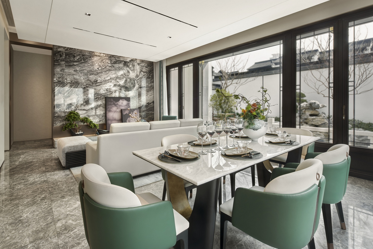項(xiàng)目位于泰州城北板塊,項(xiàng)目以拙政園、留園等蘇式名園為圓點(diǎn),打造具有五進(jìn)歸家禮序;結(jié)合中國傳統(tǒng)園林“借景”等手法,布置園林,創(chuàng)造意境。